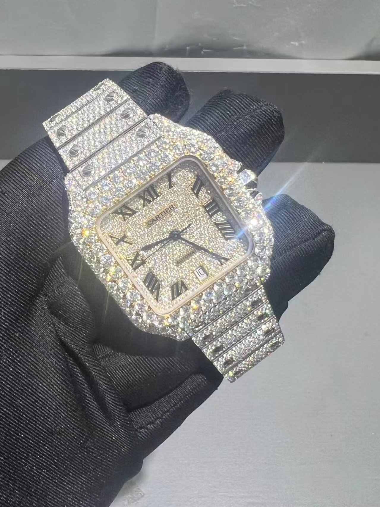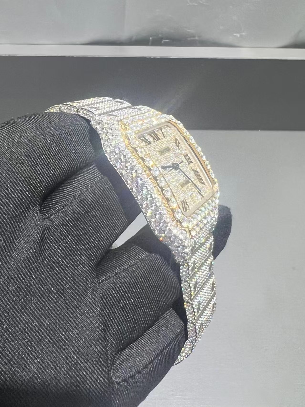 4555 颗 VVS1 实验室级莫桑石钻石,以手工精心镶嵌于腕表之上,璀璨夺目,定会让您惊艳不已。这款精美绝伦的腕表设计,360 度闪耀夺目,无处不展现奢华的魅力。它代表了宝石镶嵌工艺的最高水准,将奢华提升到前所未有的境界。璀璨的钻石表带优雅舒适,佩戴舒适,令人爱不释手。极致奢华,尊贵不凡——对于追求极致的人士而言,这款腕表是您的不二之选。